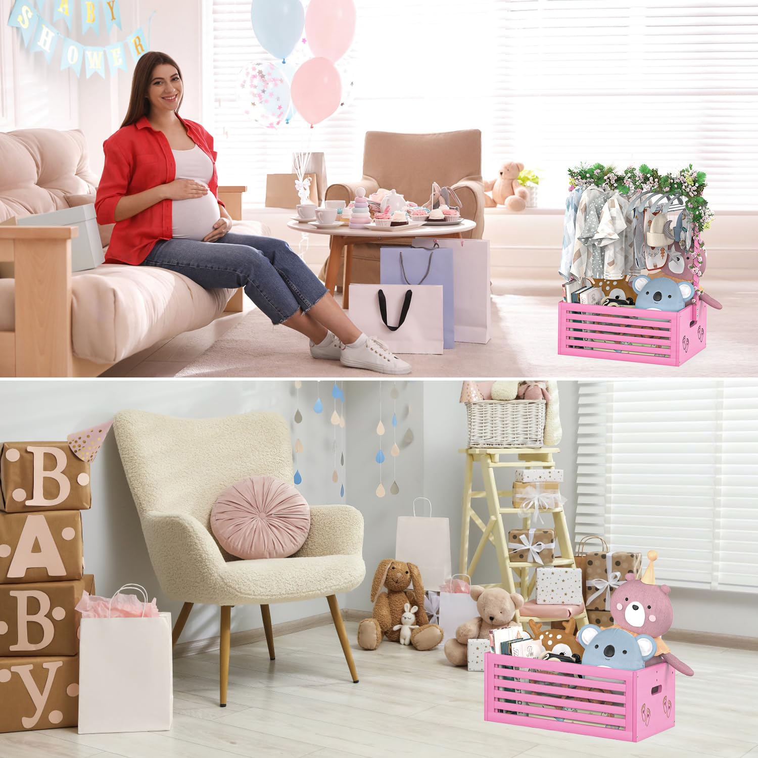 - Multi-purpose: In addition to baby gifting, this baby shower party wooden gift crate can be used for a variety of occasions. It is perfect for storing baby essentials in the nursery, or as a decoration in a child's room, or even for solving storage problems anywhere in the home. Classic design, high quality material, versatile use can support lifetime use. It's not just a gift basket but itself a great gift too.