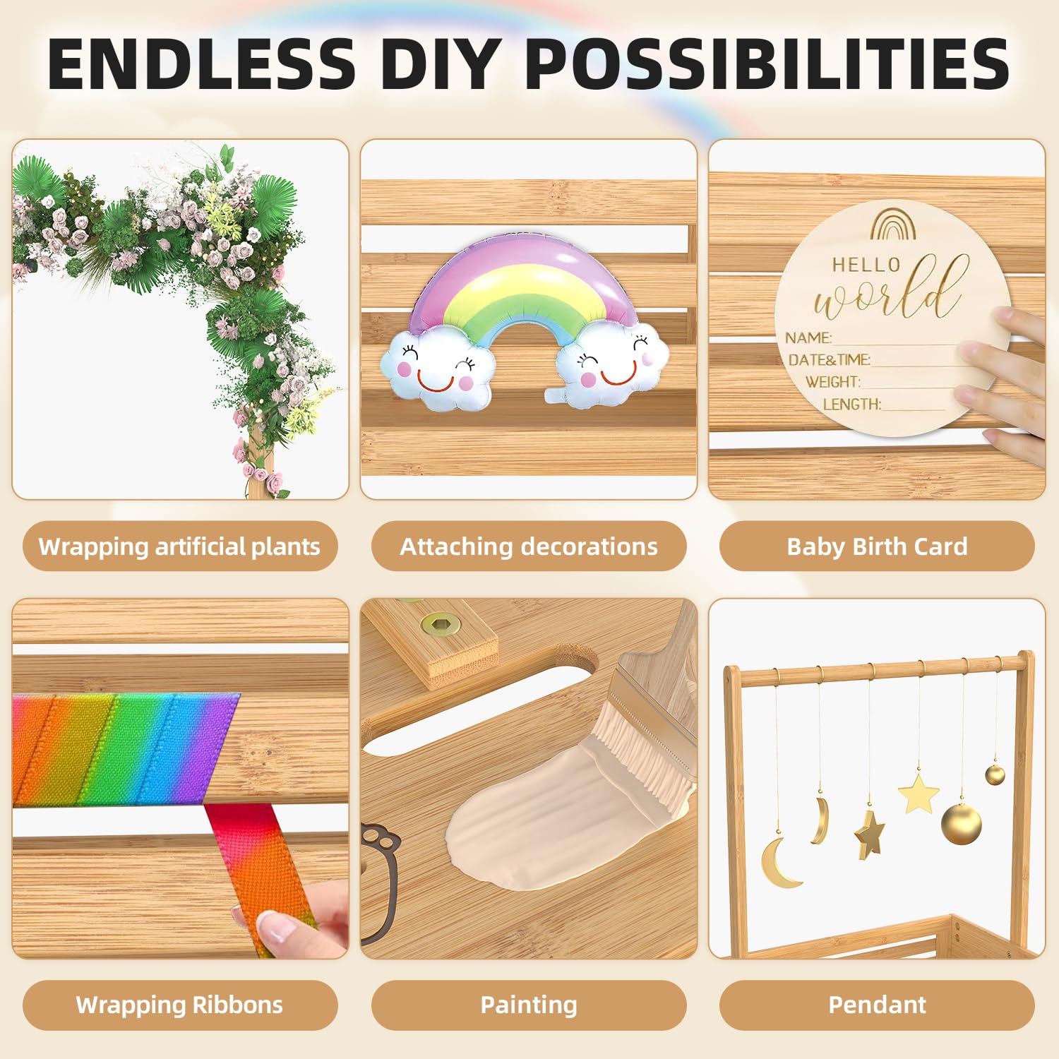 - Reliable Material: This baby shower crate with hangers bar for crafts and letters decorations are made of quality solid bamboo material, safe, sturdy and reliable, without any burr, won't hurt you and your little one's hands, and the bamboo panels on both sides are designed with baby feet hollow patterns, making it more unique. This baby gift basket is not only practical, but also a art