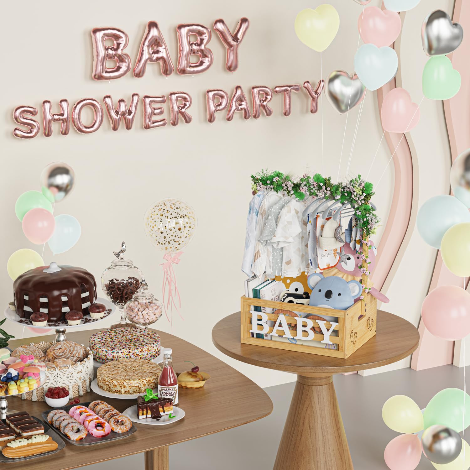 - Dual Function: This small shower party basket with handle offers dual functionality of storage and hanging. Compared to other gift containers that only provide storage, our baby shower crate box comes with a spacious crate and hanging rack, enriching the display form, making it a practical and stylish choice